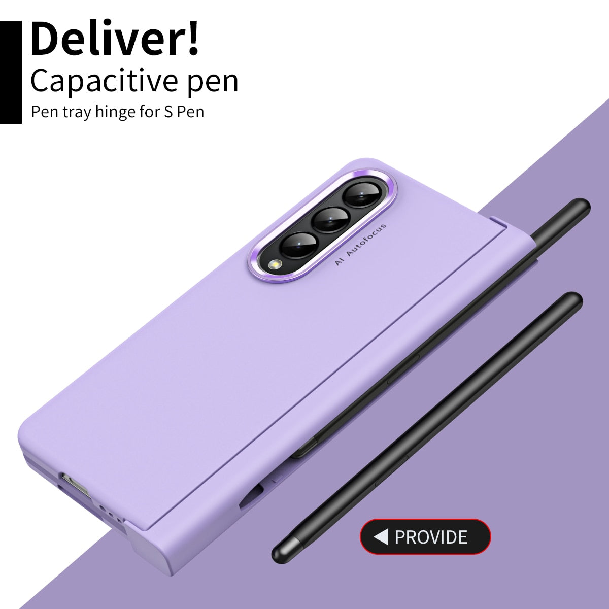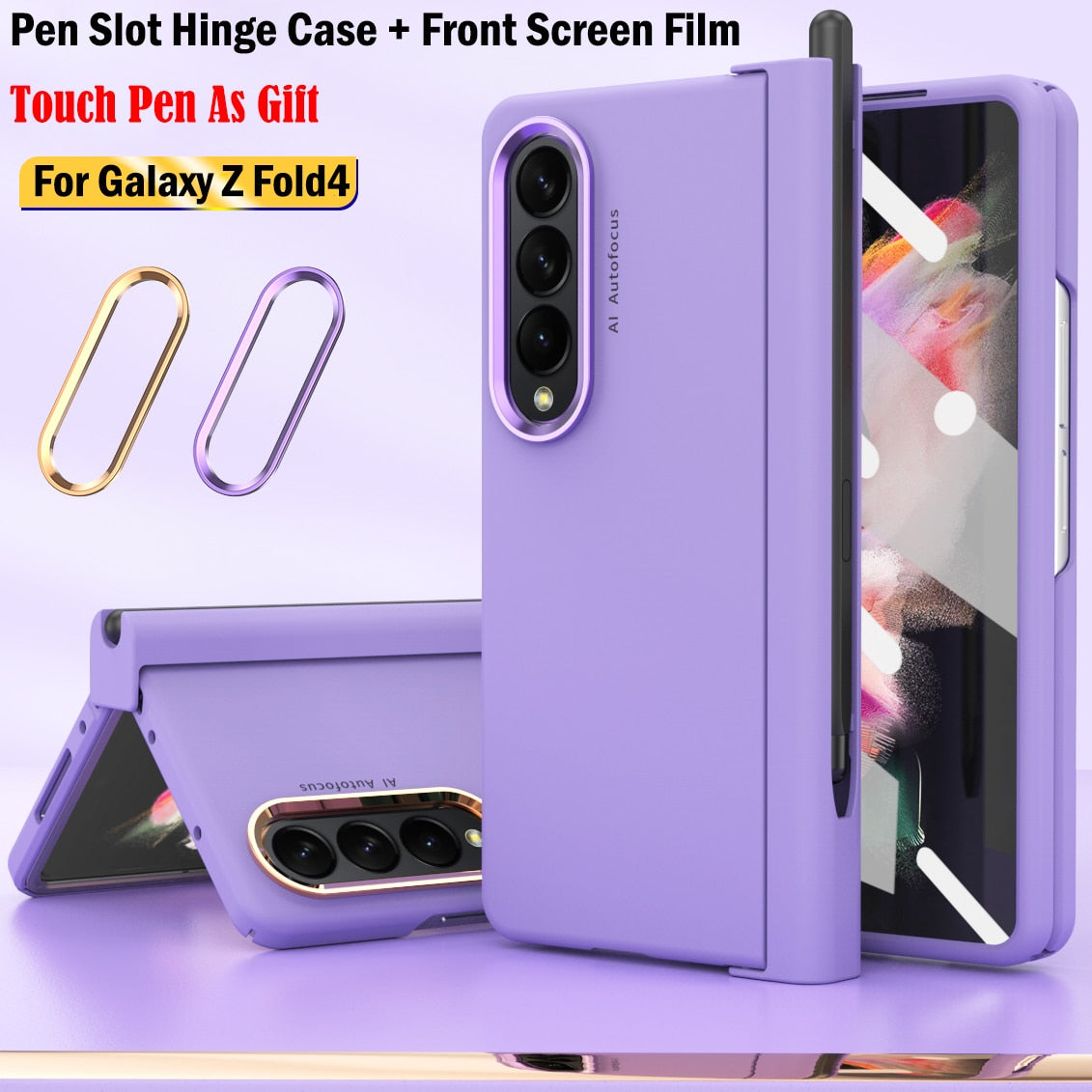 Add Touch Pen for Samsung Galaxy Z Fold 4 5G Hinge Case With Pen Slot & Front Screen Glass Film Cover for Samsung Z Fold 4 Case