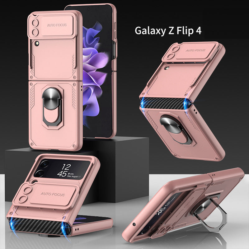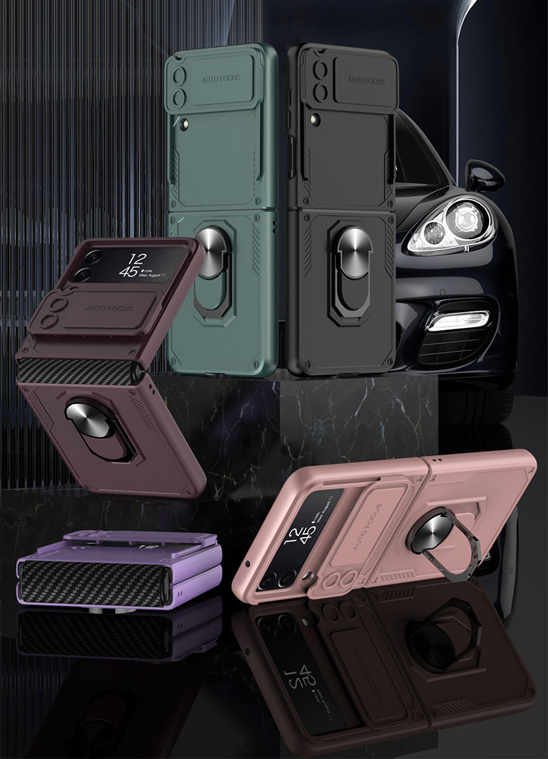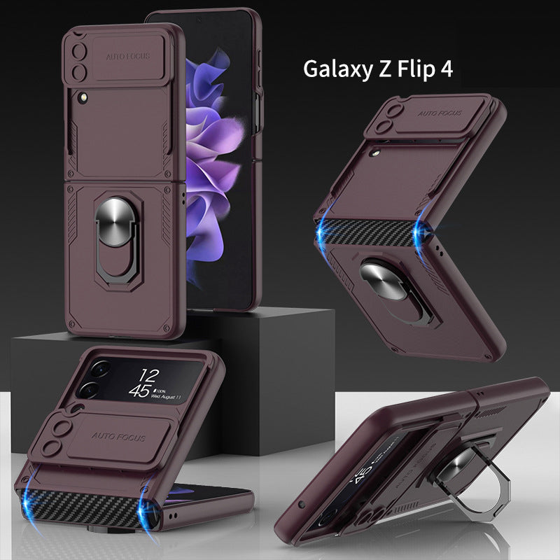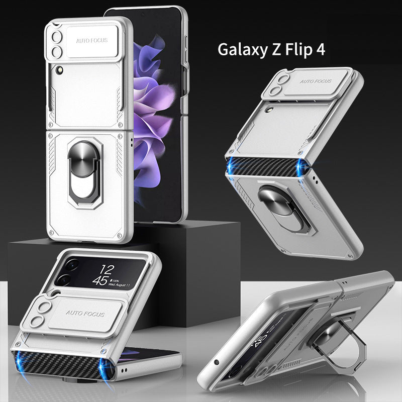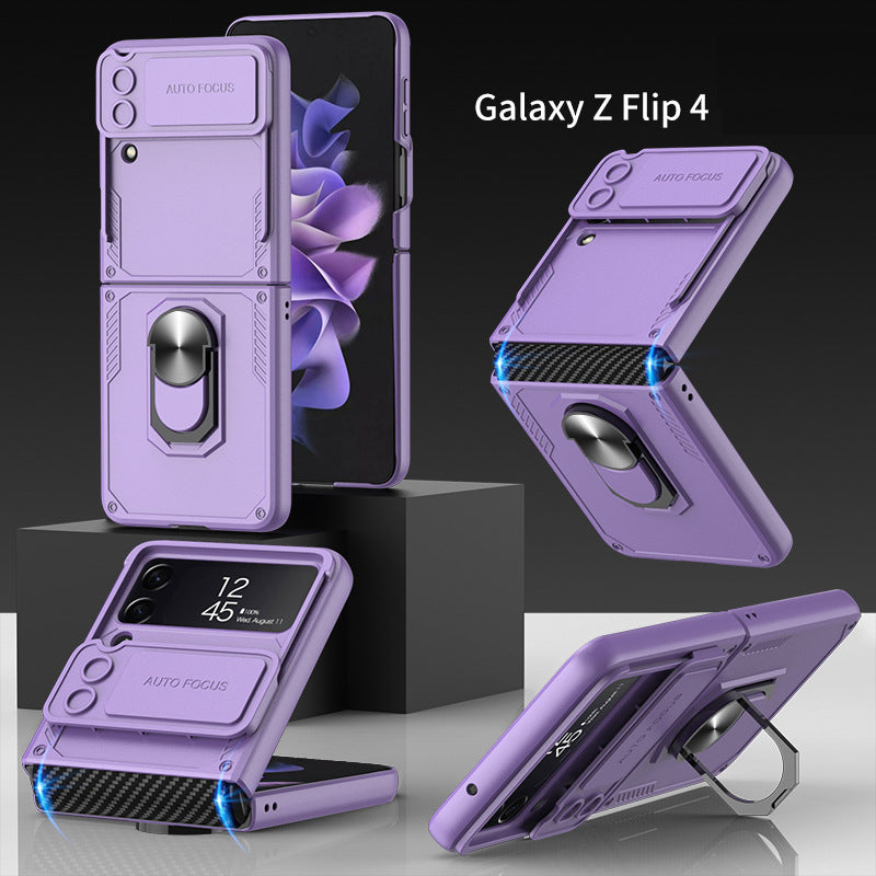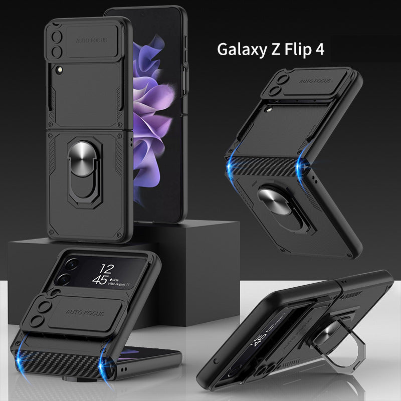 Armor Shockproof Bracket Case For Samsung Galaxy Z Flip4 5G With Ring Holder and Lens Slide Protector