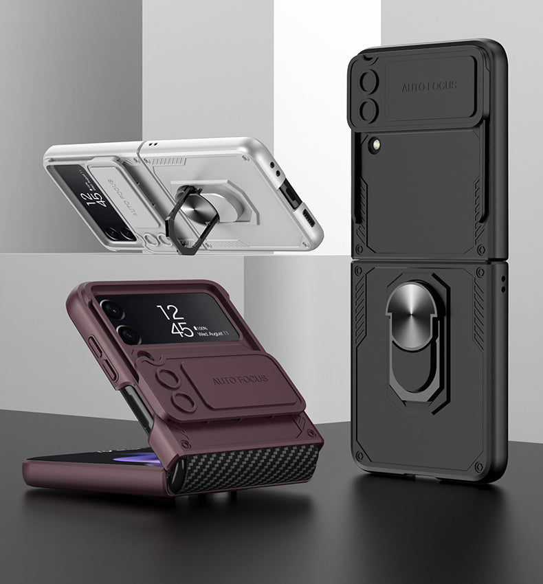 Armor Shockproof Bracket Case For Samsung Galaxy Z Flip 3 5G WIth Ring Holder and Lens Slide Protector