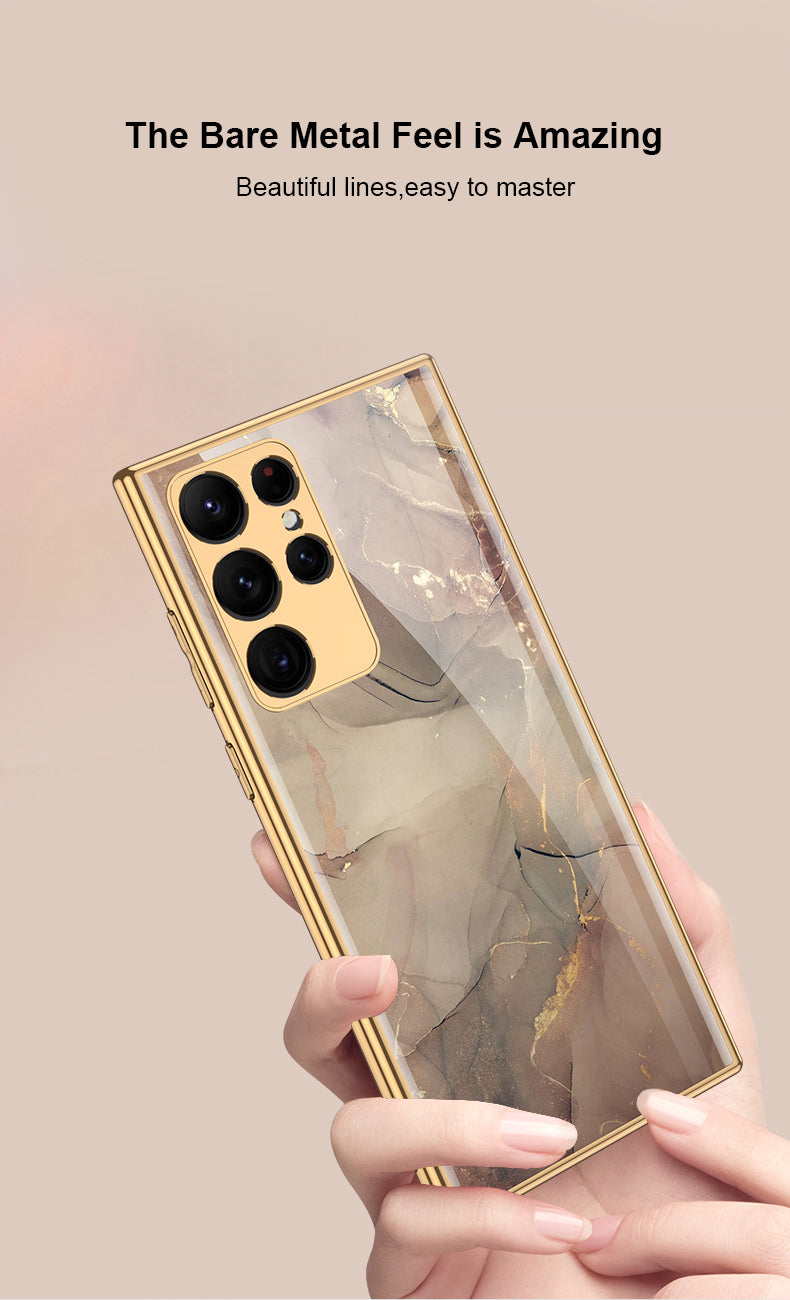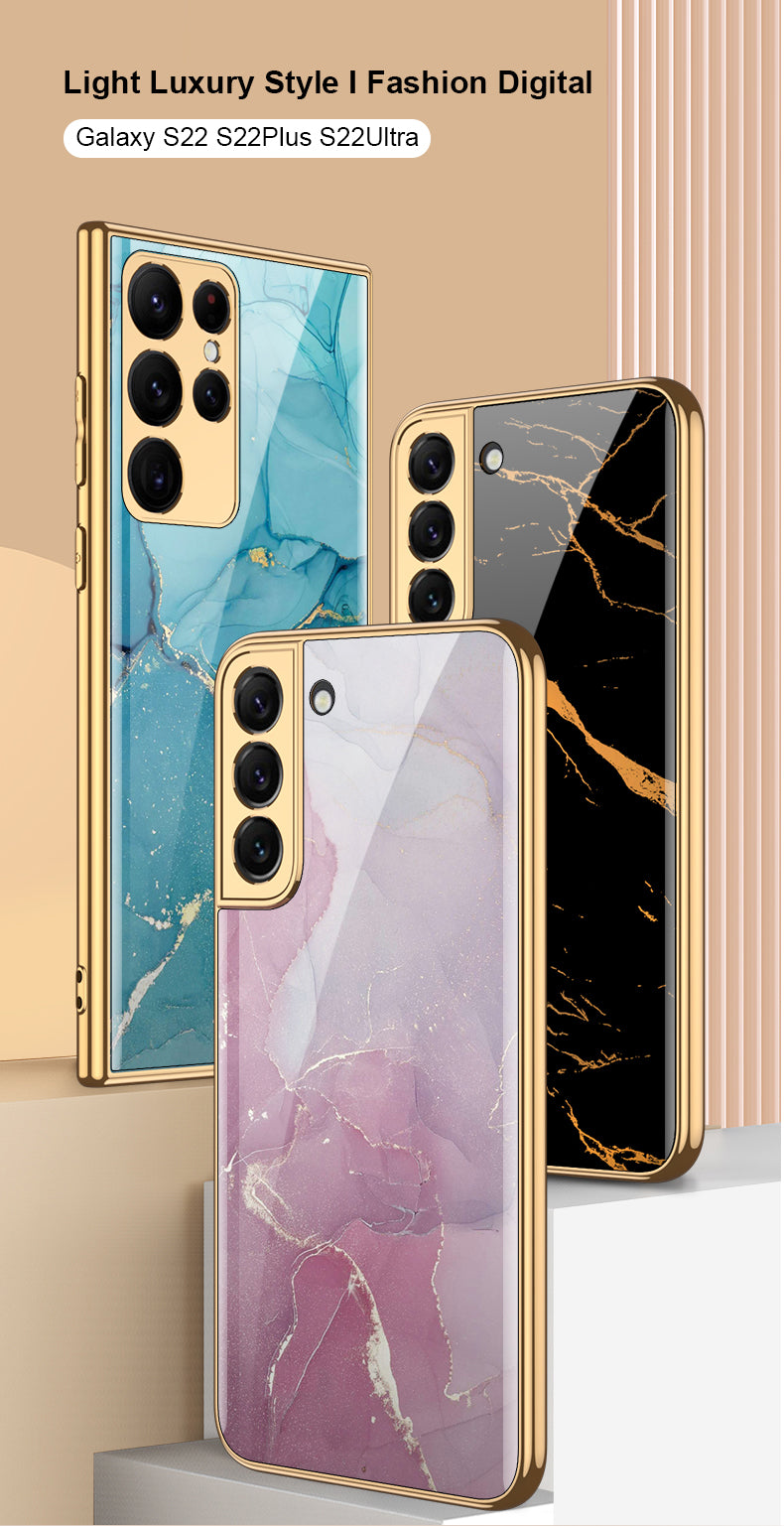 Case For Samsung Galaxy S21 S22 Ultra Case Electroplated Painted Tempered Glass Hard Cover For Galaxy S21 S22 Ultra
