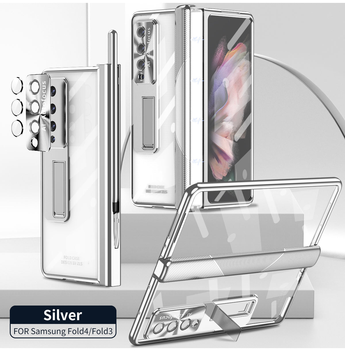 Electroplated Toughened Glass Magnetic Hinge Holder Full Cover For Samsung Galaxy Z Fold4 Fold3