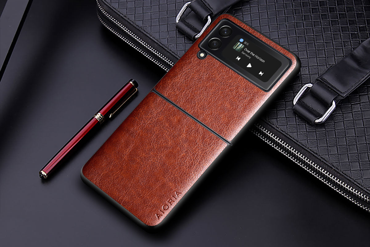 Luxury PU leather Case for Samsung galaxy Z Flip3 Flip 4 5G with Business solid color design phone cover for Samsung galaxy z flip3 5g case funda capa