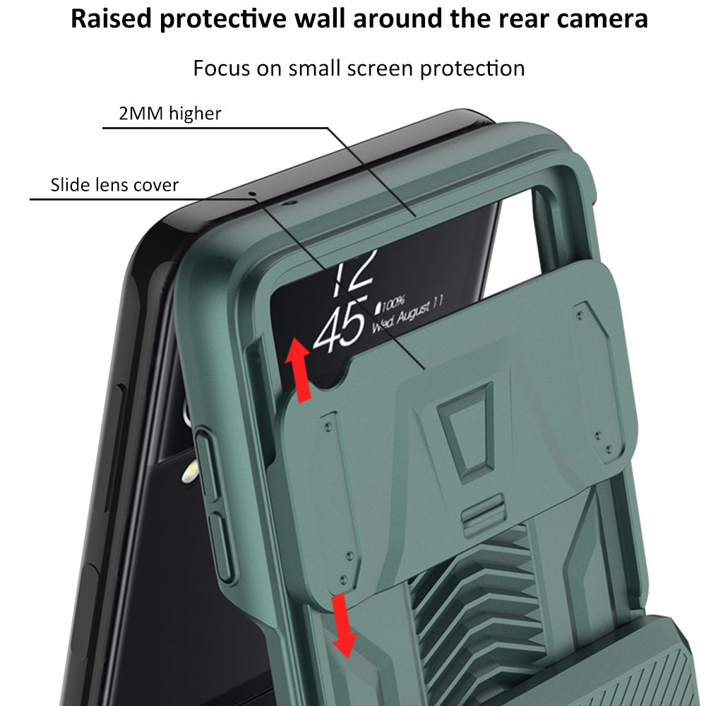 Magnetic Hinge Hard Armor Shockproof Case For Samsung Galaxy Z Flip 4 5G With Slide Lens Cover