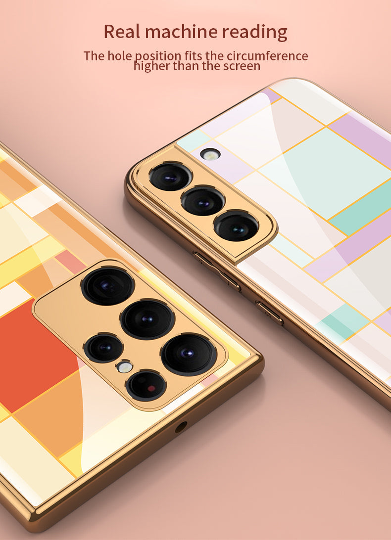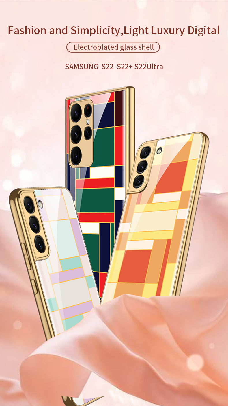 Painted Tempered Glass Case For Samsung Galaxy S22 Plus Ultra Case Anti-knock Plating Frame Hard Cover For Galaxy S22Ultra