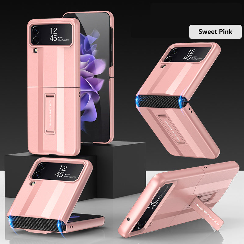 PC Super-car Case For Samsung Galaxy Z Flip 4 5G Phone Case Carbon Fiber Pettern Folding Stand Luxury Protective funda for flip4